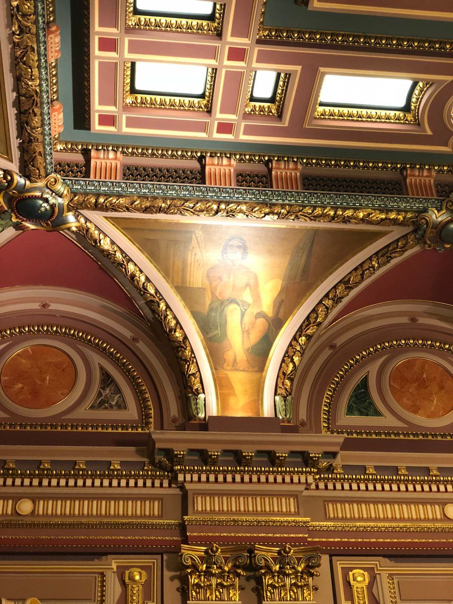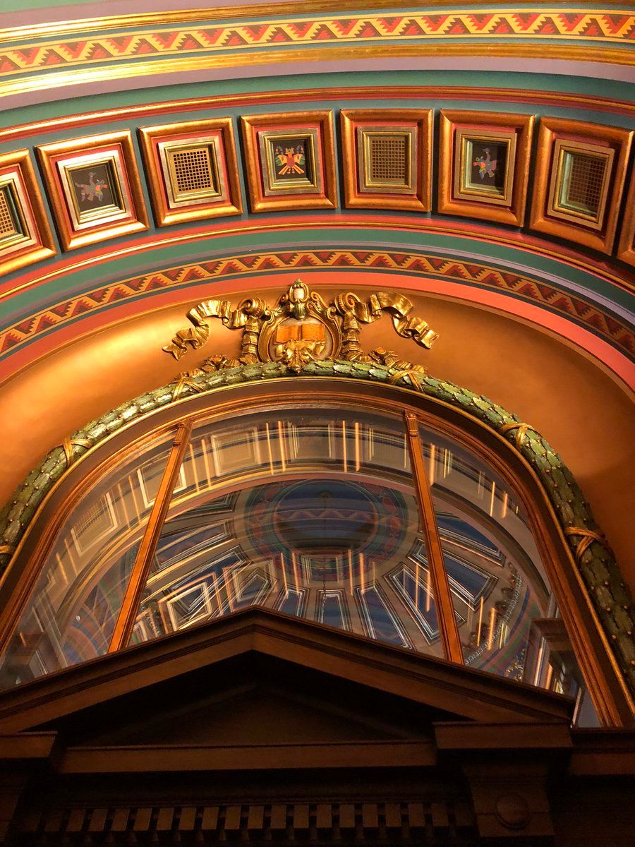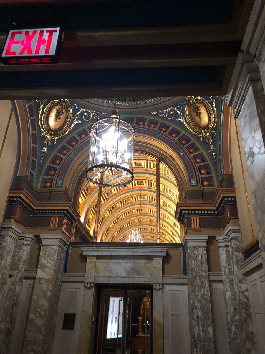 My escort turned on the lights while I was in the middle of taking this sweet pano from the podium of this ballroom/voting chambers