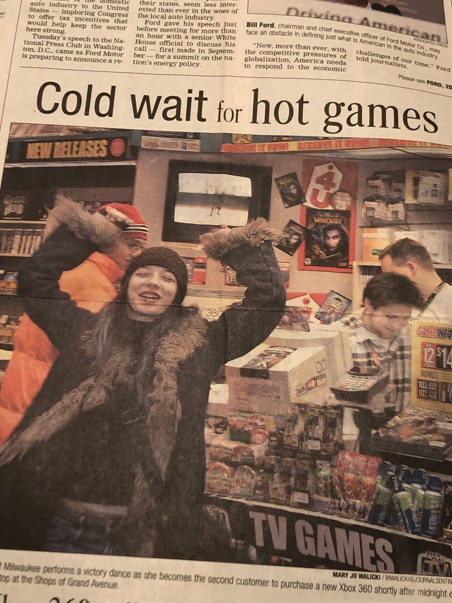 Not the second, the FIRST. I was the FIRST to purchase an Xbox 360. I then turned around and bought a second for my broke-ass boyfriend. Unrelated: that blue hair looks saaaaddddd in newsprint.