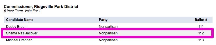 This is what your sample ballot will look like if you live within the Ridgeville Parks District. VOTE FOR SHAMA!